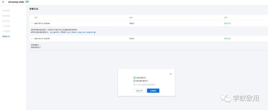 3. 点击完成后,自动上传 zip 包并布署,同时会创建 API 网关,直接点「立即访问」