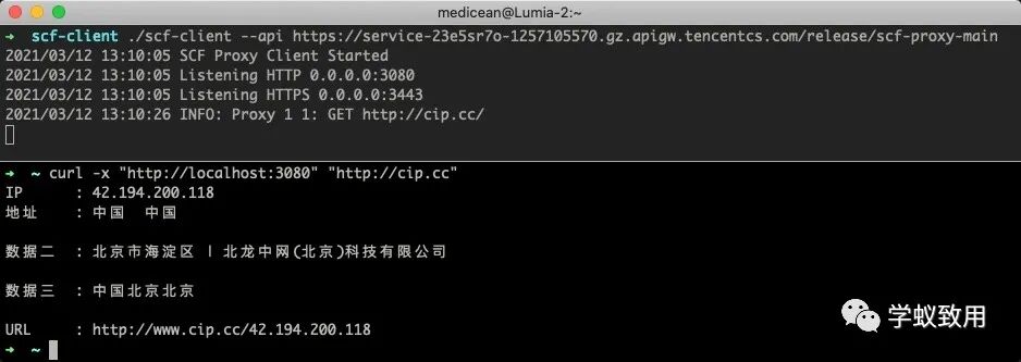 ./scf-client --api https://service-23e5sr7o-1257105570.gz.apigw.tencentcs.com/release/scf-proxy-main