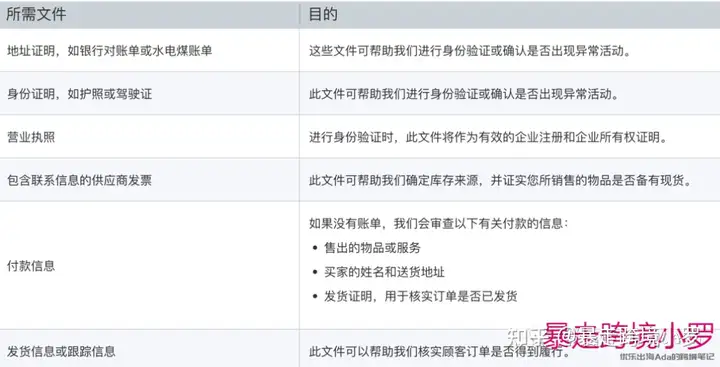 以下为paypal官方要求提供的文件及其用途: